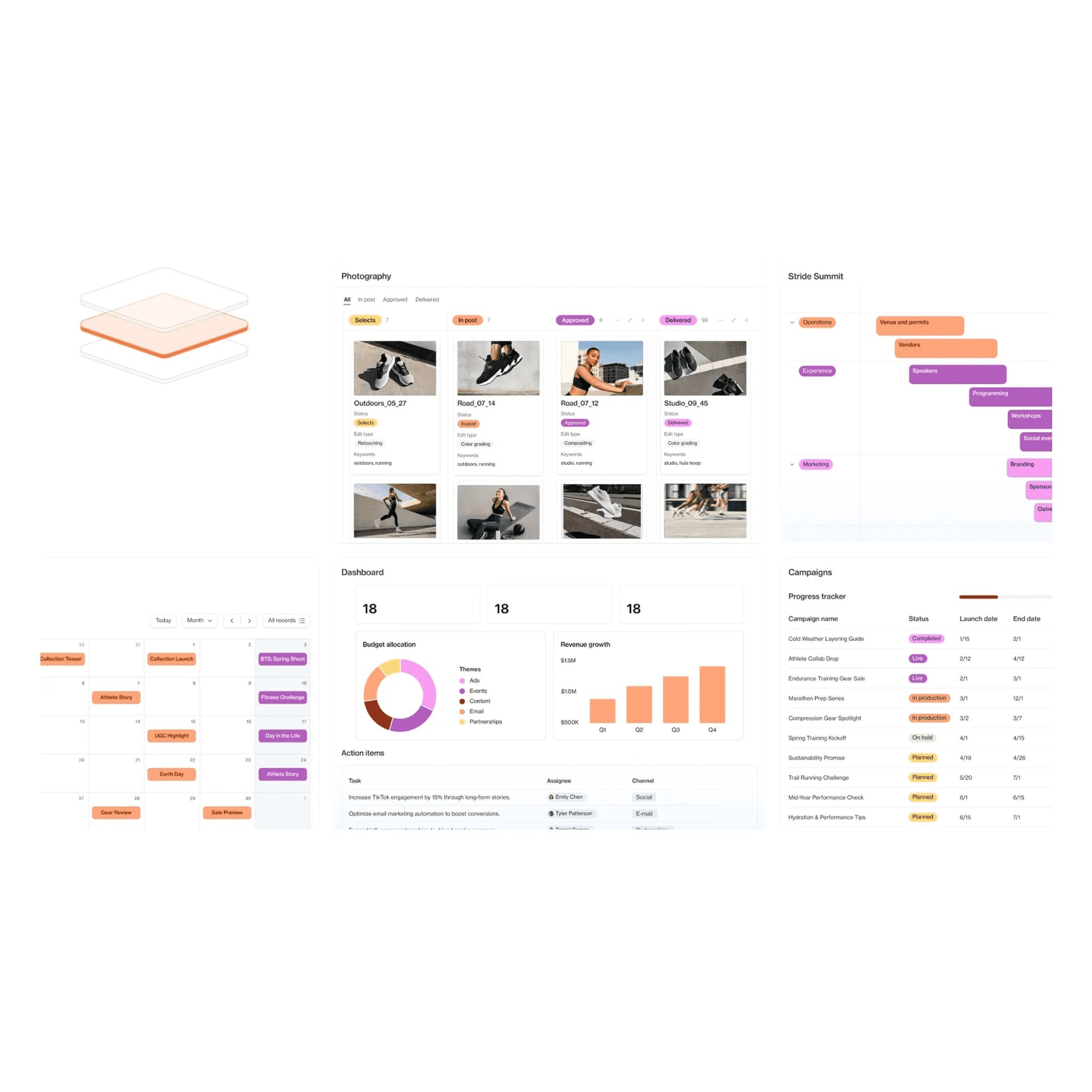 Pas de interfaces aan zodat ze aansluiten bij de manier waarop elk teamlid werkt. Geef specifieke informatie aan de juiste mensen en maak gebruik van interactieve dashboards om gegevens inzichtelijk te maken. Airtable Interfaces zijn toegankelijk via een mobiele app, zodat je altijd en overal up-to-date blijft.