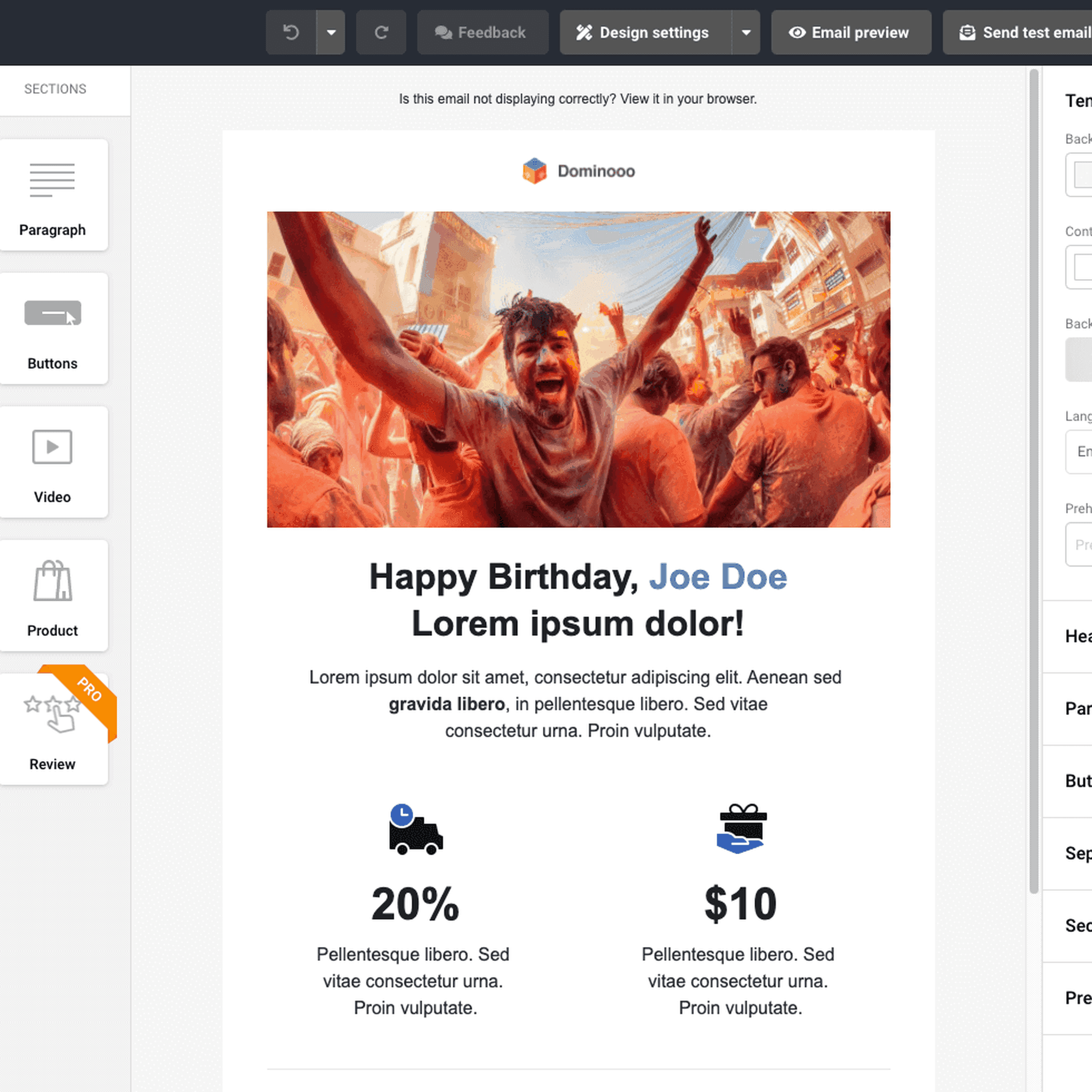 Geen zin om zelf je nieuwsbrieven te ontwerpen? Geen probleem! Kies een ontwerp uit de vele sjablonen, pas de lay-out aan en voeg je tekst en afbeeldingen toe. Je bent nu klaar om je nieuwe campagne te verspreiden!
